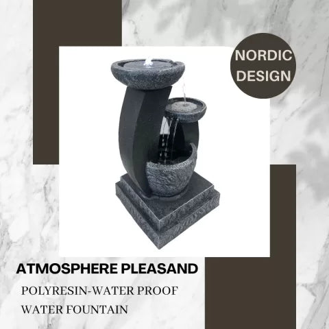 With sweeping arcs and textured, bowl-like tiers, this fountain takes inspiration from smooth river stone and natural water pathways. Its flowing curves offer a modern aesthetic, while the stone-effect finish adds a grounded, organic presence to any garden, patio, or courtyard. It effortlessly marries sculpture with utility—becoming a standout design element that enhances both modern and traditional settings.