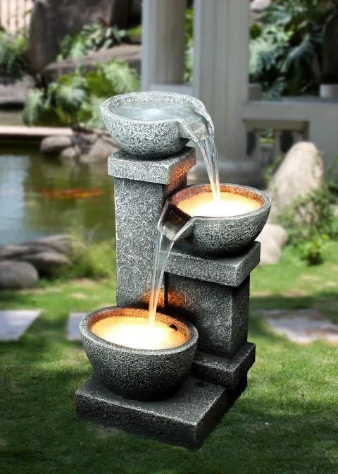 Cascading Bowls Stone Look Water Feature with LED
