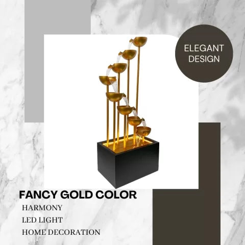 The Cascading Copper Bowls LED Lighting Water Fountain is a true visual masterpiece — a symphony of gold-toned curves, flowing water, and ambient light. Designed to command attention in contemporary spaces, this tall, elegant fountain stands at 134cm high and features a series of polished copper-look bowls that channel water in a graceful descending arc. It’s the ideal centrepiece for stylish gardens, patios, foyers, or indoor lounges.