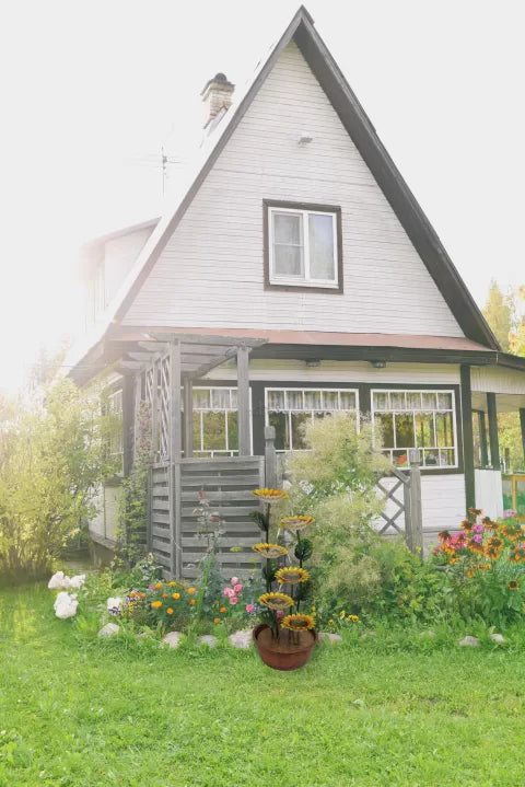 Expertly constructed from galvanised iron, this fountain is as sturdy as it is charming. The hand-finished metal petals and leaves give it an artisan-crafted appeal, while the corrosion-resistant material ensures reliable use in a range of sheltered environments. The earthy brown base and green stems complement the vivid yellow sunflower heads, resulting in a lively, realistic look with long-lasting quality.