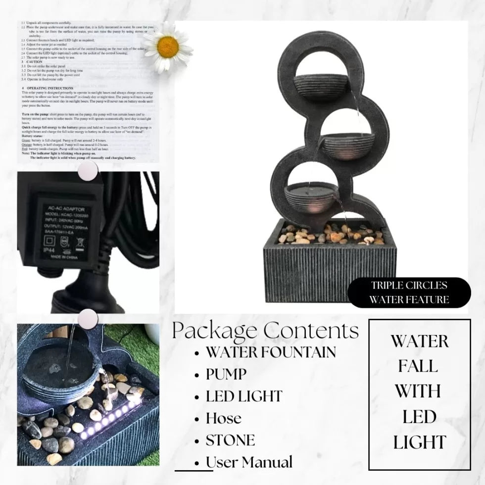 Modern 3 bowl cascading water feature with LED light