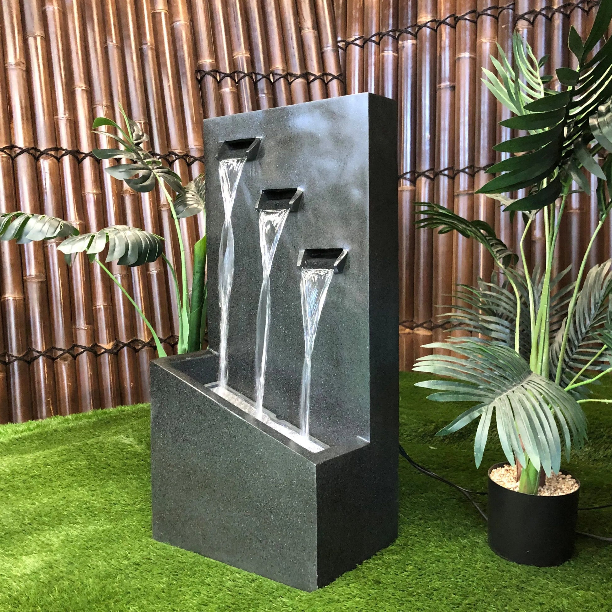 The Modern 3 Spout Vertical LED Light Wall Water Fountain blends crisp geometry and dynamic water movement into a bold vertical statement. With its sleek, matte texture and minimalist design, this 3-spout water feature adds a contemporary, architectural touch to indoor and sheltered outdoor environments. Measuring 38.5cm wide, 24cm deep, and 79cm high, it delivers a commanding presence while maintaining an elegant profile.