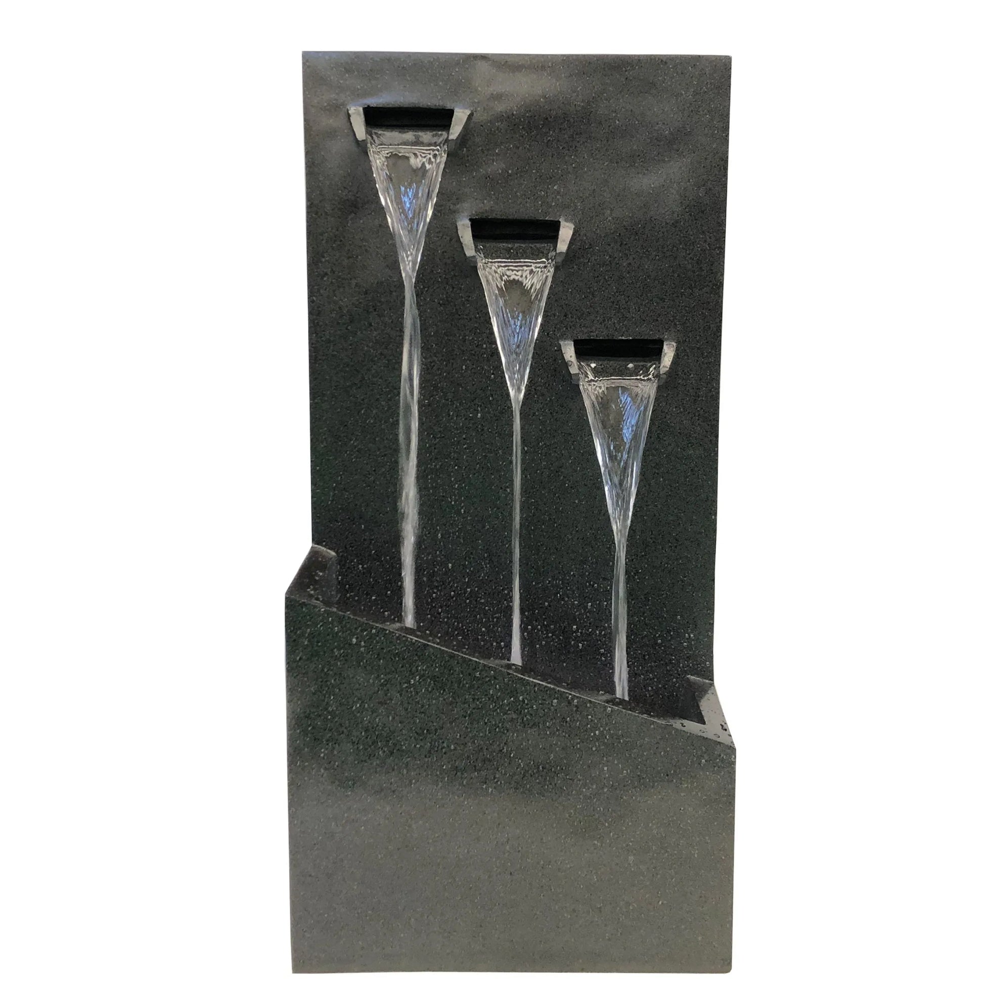 Crafted from high-quality polyresin, this fountain features a dark, speckled finish that mimics polished volcanic stone or urban slate. Its tall, rectangular frame and sharply angled water channels are designed to emphasize height and linearity. Despite its robust look, the polyresin construction keeps the piece lightweight yet strong, making it easy to install and resistant to wear in protected environments.