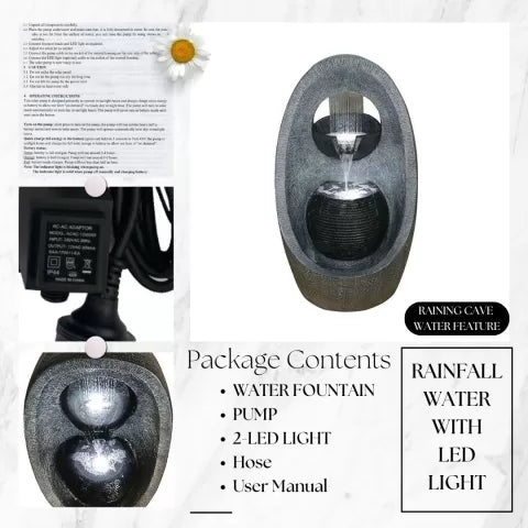 Add modern elegance and tranquil flow to your garden or patio with the Modern Rain Curtain Bowl Water Fountain with LED Light. Designed with a sleek oval shell and a captivating vertical rain curtain effect, this fountain brings dynamic water movement, ambient lighting, and architectural sophistication to any indoor or outdoor space.