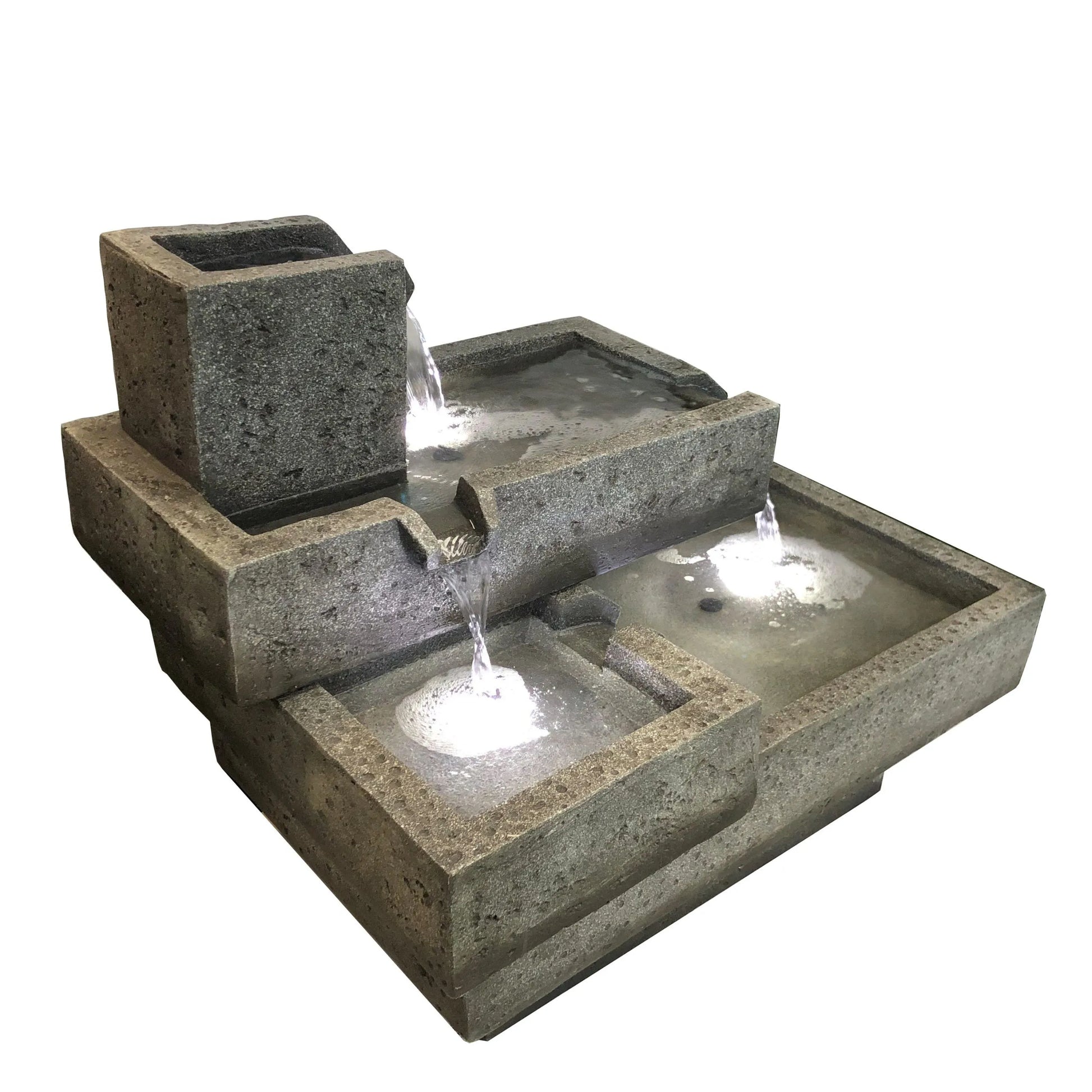 Modern Tiered Stone Look LED Lighting Water Feature