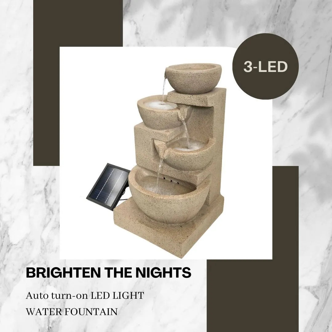 - Product Name: Solar 4 Tiered Cascading Natural Stone Water Fountain