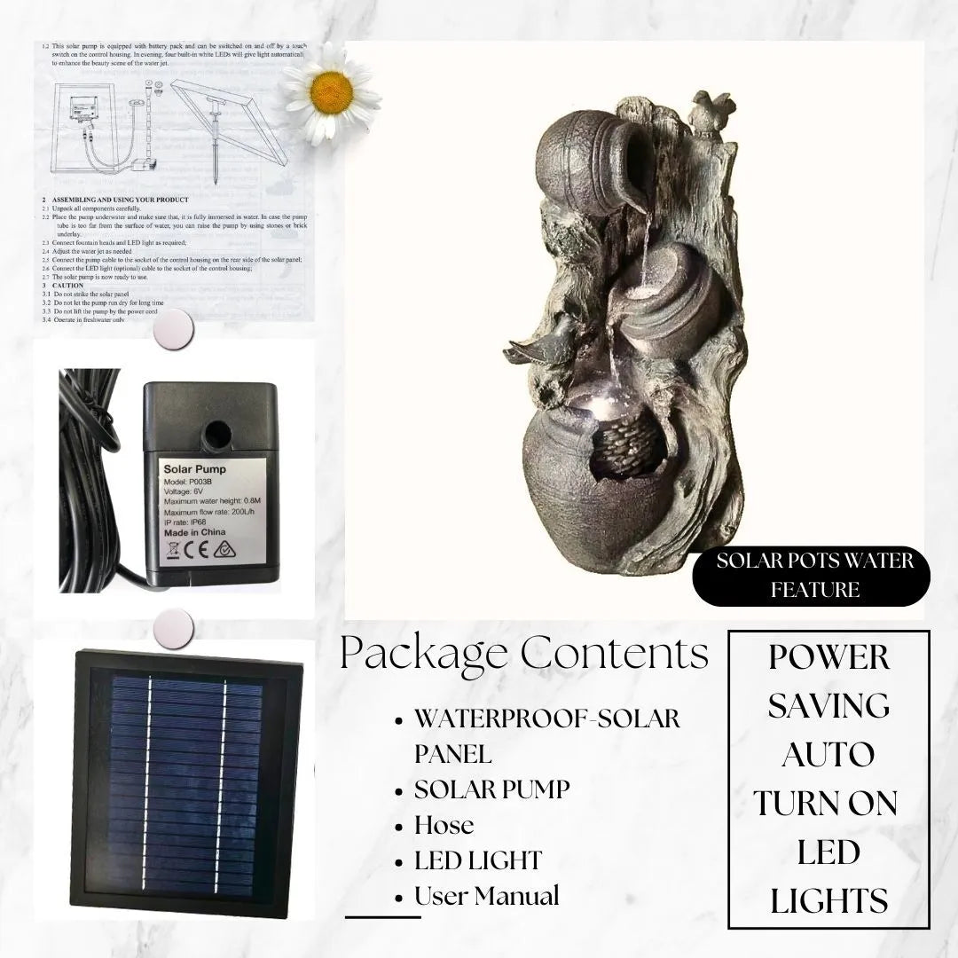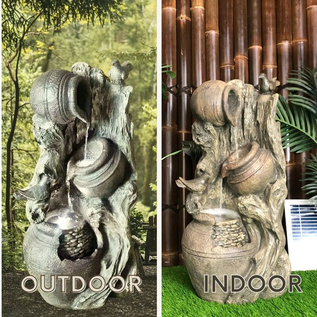 Celebrate the beauty of nature and tradition with this solar-powered fountain—a perfect fusion of artisan design, ambient light, and the timeless sound of flowing water.