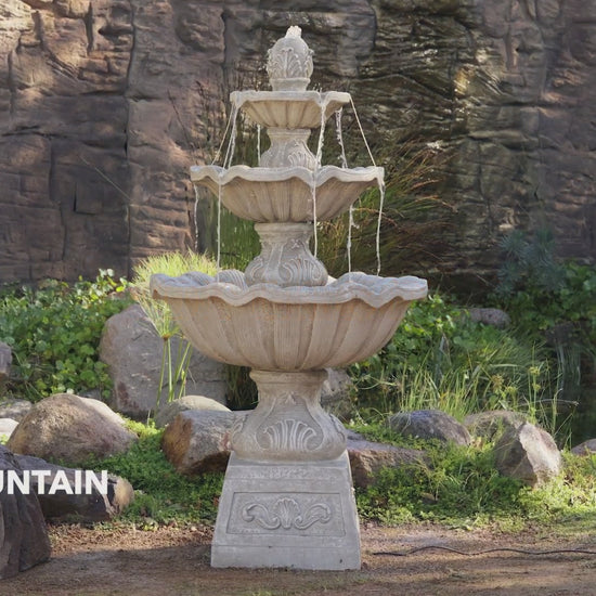 The Fleur Decorative Tiered Garden Water Fountain Feature is a classic statement piece inspired by traditional European garden fountains. Its beautifully tiered scalloped bowls and ornate scrollwork detailing evoke a sense of old-world romance, making it an elegant focal point for courtyards, formal gardens, and landscaped outdoor spaces. The balanced proportions and refined silhouette bring a sense of grace and permanence to any setting.