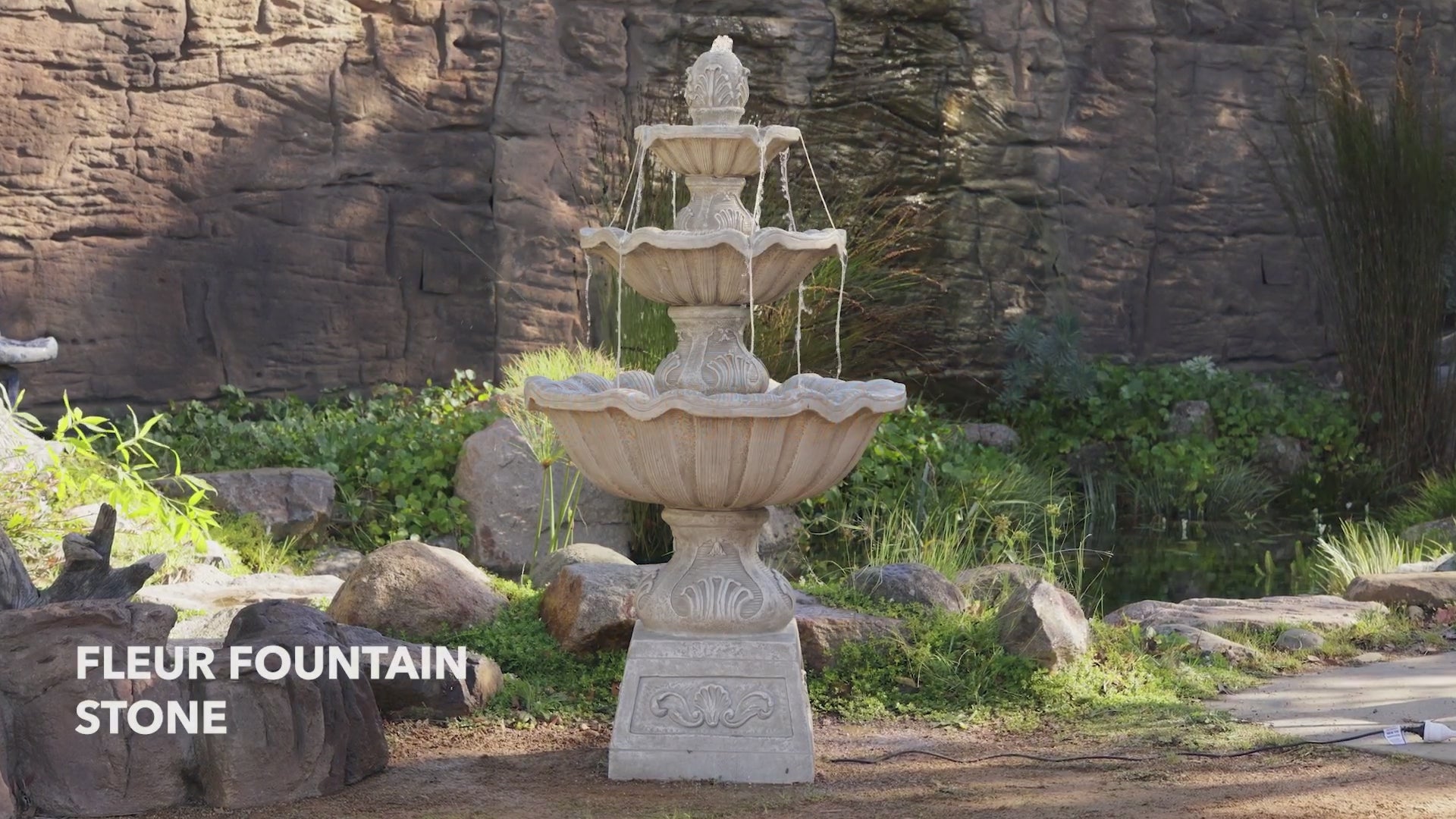 The Fleur Decorative Tiered Garden Water Fountain Feature is designed for straightforward installation and reliable everyday enjoyment. Built-in warm LED lighting softly illuminates the cascading water after dusk, highlighting the sculptural details and enhancing its presence at night. With the pump, fittings, and power cord included, this fountain offers a seamless combination of decorative elegance, calming water movement, and durable craftsmanship—making it a timeless addition that enhances your garden both day and night.